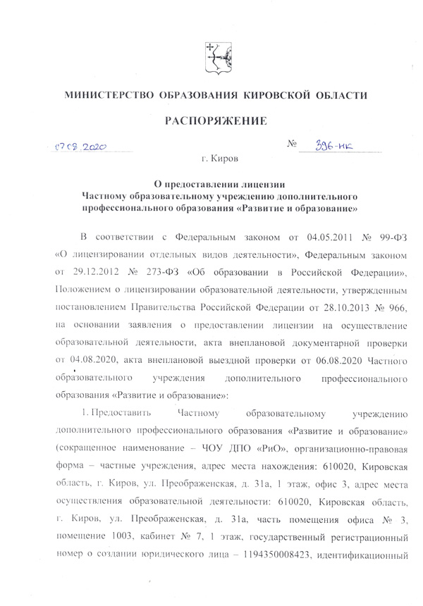 - Положение «О порядке изготовления, использования, хранения и уничтожения факсимильных подписей должностных лиц частного образовательного учреждения дополнительного профессионального образования «Развитие и образование»